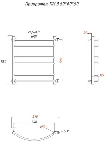 Водяной полотенцесушитель Тругор Приоритет ПМ 3 50x60x50см хром Приоритет3/ПМ506050