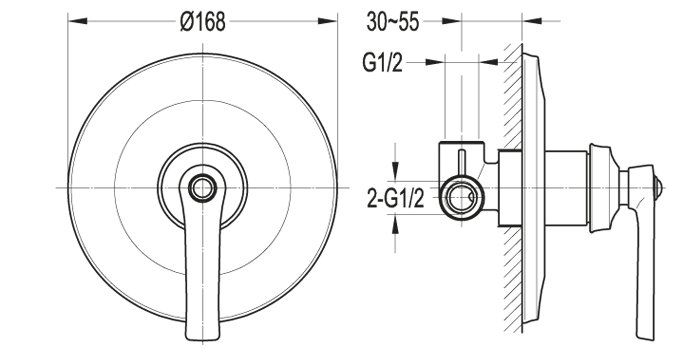 Тип подводки: внутренний (скрытый) монтаж 1/2"