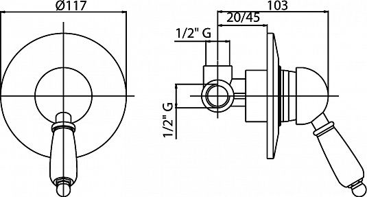 Встраиваемый однорычажный смеситель для душа, хром Cezares VINTAGE-DIM-01-Sw