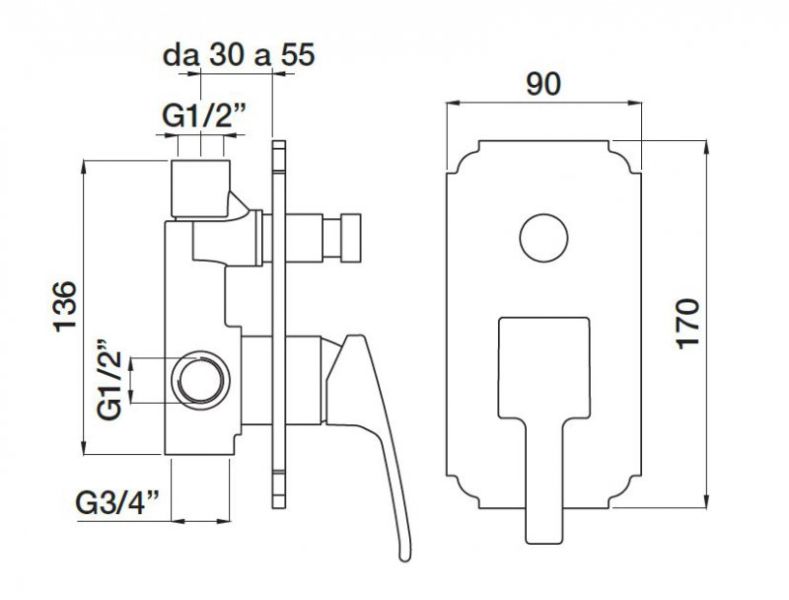 Встраиваемый однорычажный смеситель для душа с переключателем Cezares OLIMP-VDIM-03/24-L