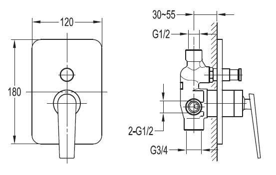 Тип подводки: внутренний (скрытый) монтаж 1/2"