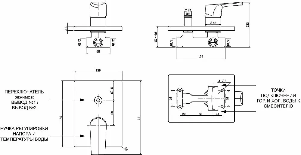 Смеситель для душа Aquanet Static AF330-51С (с внутренней частью) предназначен для ванны с душем... Подробнее