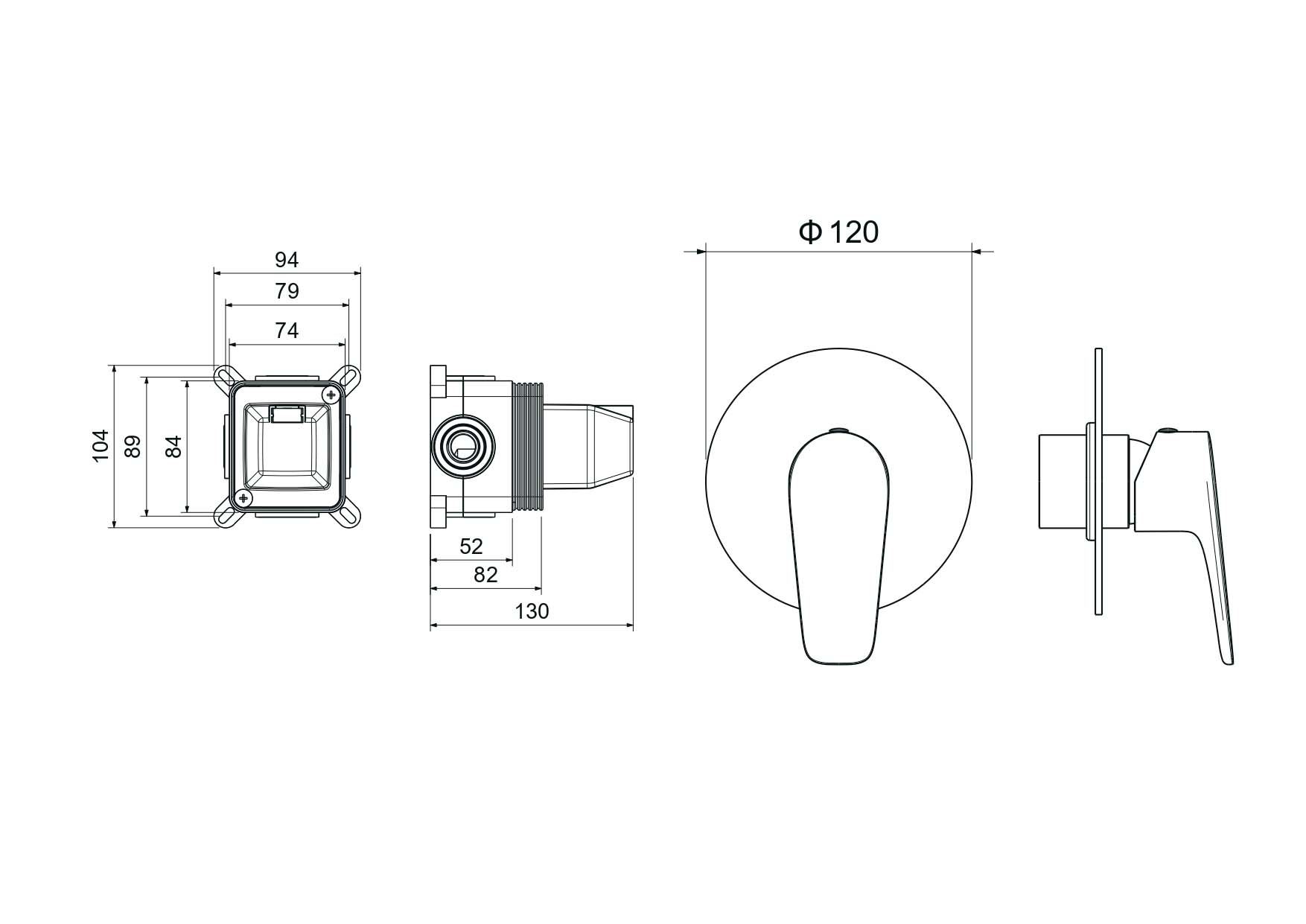 • Смеситель из латуни с установочной коробкой на 1 потребителя (внешняя и скрытая часть)