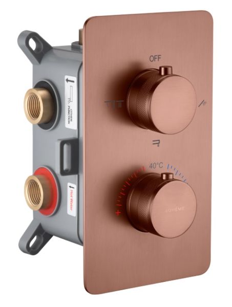 Новый встраиваемый смеситель для душа с термостатом Boheme CELL THERMO. Бокс для комфортного монтажа в стену. Термостат от мирового лидера, французского производителя Vernet. Версия на 2 выхода(верхний душ и ручная лейка) и версия на 3 выхода(верхний душ, ручная лейка и излив на выбор арт.625 и арт. 625/2). Идеально дополняется душевым набором Boheme CELL арт.427 с 2-х режимной верхней лейкой. 8 цветов в наличии.Смеситель для душа Boheme Cell, термостатический,Характеристики: