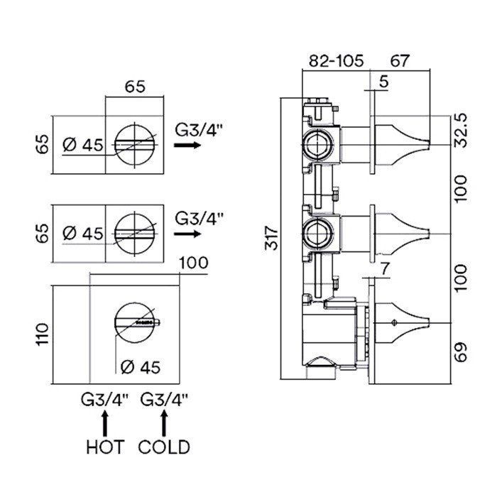 Внешняя часть выполнена в стильном черном матовом цвете, что отлично смотрится в современных интерьерах и придаёт им элегантный вид. Скрытые компоненты устройства эффективно скрыты, что делает его установку аккуратной и эстетически приятной. Термостат Bossini Apice идеальный выбор для тех, кто хочет создать современное и роскошное пространство в своей ванной комнате.