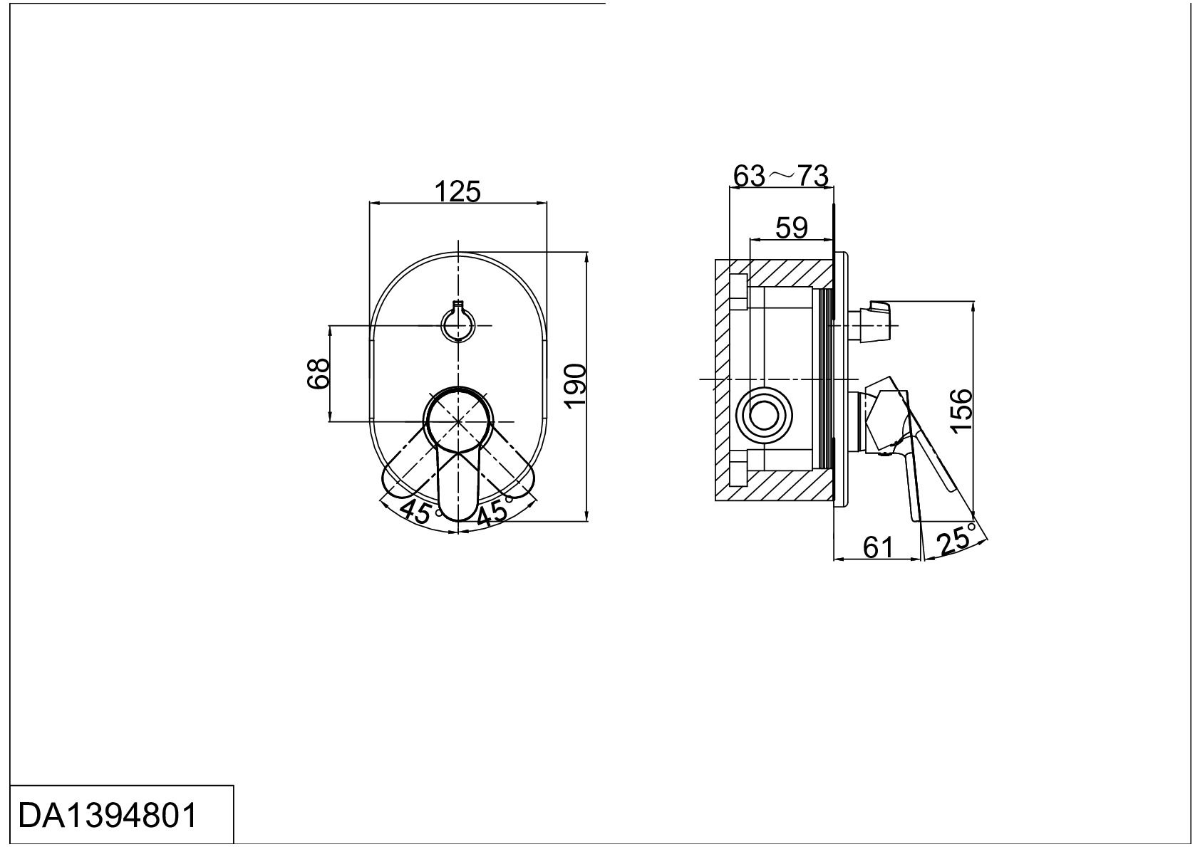 Смеситель для душа DQ Marx Rhein DA1394801 однорычажный, встраиваемый для монтажа на стену.