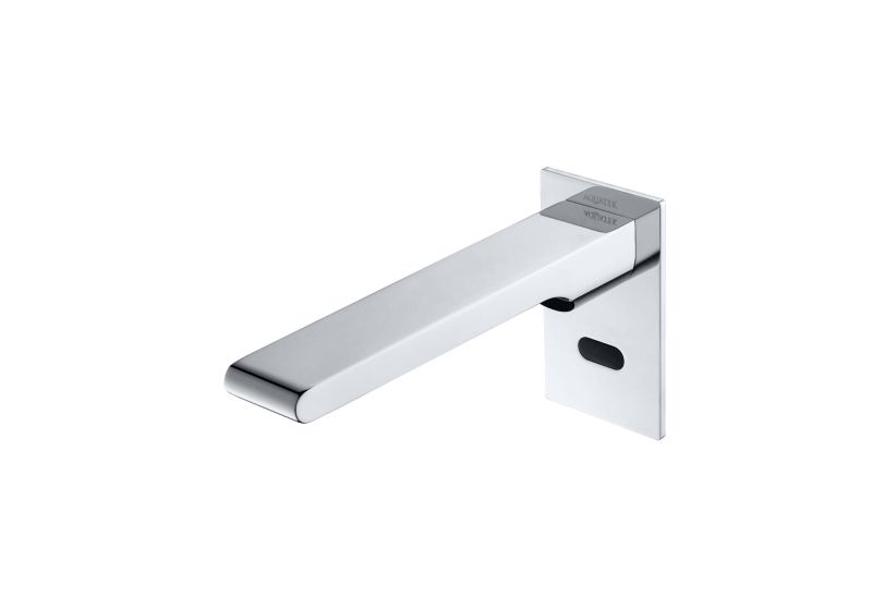 Электронный смеситель оснащен инфракрасным датчиком для активации электромагнитного клапана. Удобство - вода начинает течь автоматически, когда руки находятся в зоне действия датчика. Когда руки убираются из зоны действия датчика, вода прекращает течь, с максимальной продолжительностью потока 60 секунд. Исключительный эффект экономии воды - позволяет максимально экономить воду, поскольку вода течет только тогда, когда пользователь подносит руки к смесителю с низким расходом воды – 8,5 л/мин. Зона чувствительности датчика 5 -30 см. Источник питания - щелочные батарейки 4×1,5 В AA и/или электропитание от сети 220 В 50 Гц. Срок службы батареи около 109500 циклов. Настройка температуры воды происходит с помощью регулятора температуры входящего в комплект. Клапан смешивания горячей и холодной воды с возможностью регулировки размещается под столешницей. Все части для установки в комплекте.