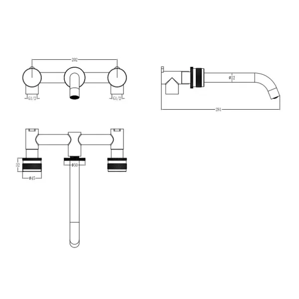 Смесители доступны в цветах: золото, матовое золото, хром, никель, графит и черный. Коллекция представлена смесителем для раковины, настенным смесителем для раковины и отлично дополняется встроенными душевыми системами Fusion и Zodiac Смеситель для раковины Boheme Prestige 152-2-B-PR, встраиваемый, цвет черный