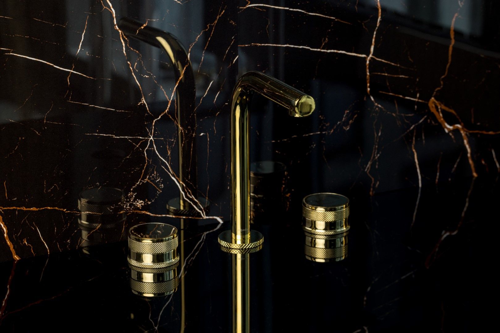Смесители доступны в цветах: золото, матовое золото, хром, никель, графит и черный. Коллекция представлена смесителем для раковины, настенным смесителем для раковины и отлично дополняется встроенными душевыми системами Fusion и ZodiacСмеситель для раковины Boheme Prestige 152-G-PR, цвет золото