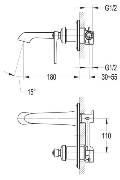 Тип подводки: внутренний (скрытый монтаж) 1/2"
