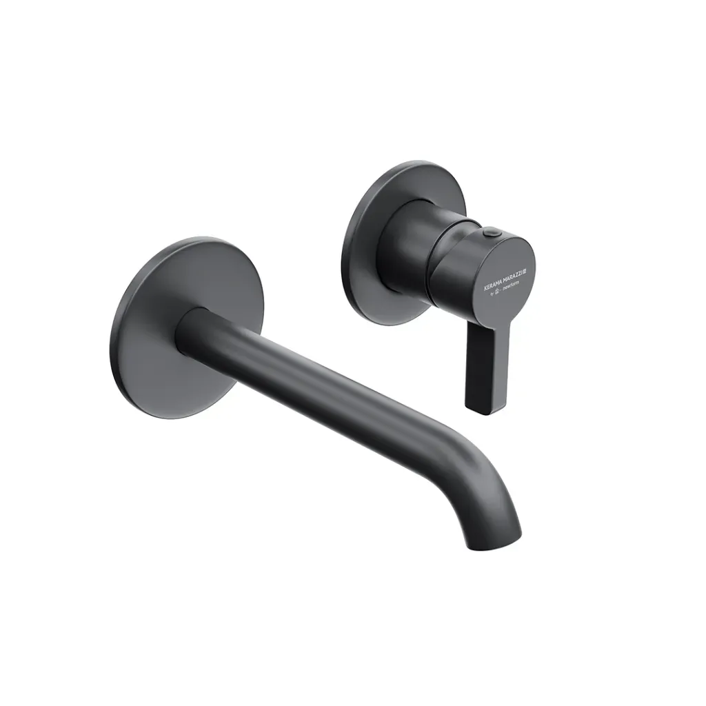 Встраиваемый в стену однорычажный смеситель для раковин. Внимание: для чистки черных и цветных изделий можно применять только мягкую губку и мыльный раствор. Использование моющих и абразивных средств запрещено.