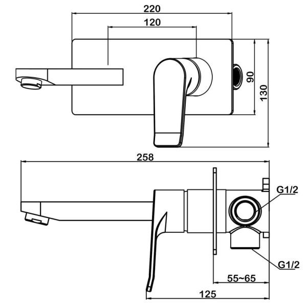 Cмеситель Swedbe Platta для раковины встраиваемый. Полный комплект установки (комплект скрытого монтажа и наружная часть смесителя). Керамический картридж, аэратор.