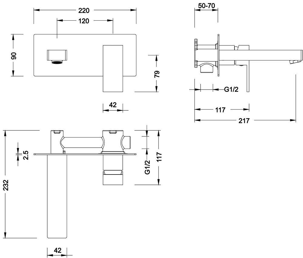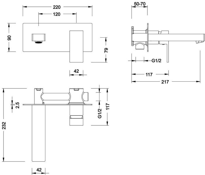• Смеситель скрытого монтажа - 1 шт.