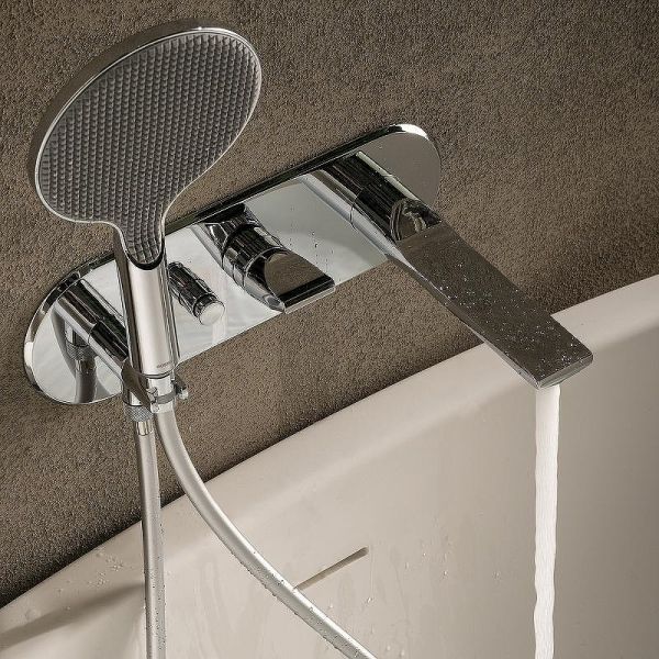 Смеситель для ванны Bossini Apice сочетает стиль и функциональность. Оснащен кнопочным переключателем, позволяющим легко переключаться между двумя выходами воды, что обеспечивает максимальное удобство при использовании. Излив длиной 207 мм с встроенным аэратором обеспечивает равномерное распределение воды и предотвращает брызги. Ручной душ диаметром 140 мм установлен на фиксированном держателе, что обеспечивает удобство при принятии душа. Шланг Cromolux длиной 150 см обеспечивает гибкость и свободу движения, а подключение 1/2” делает установку простой и удобной.
