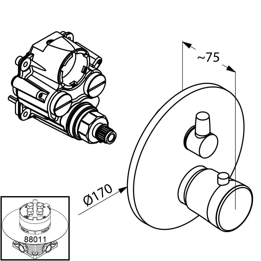 - встраиваемый смеситель для ванны и душа с термостатом