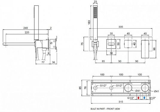 Встраиваемый смеситель для ванны и душа однорычажный, в комплекте с ручным душем, бронза Cezares UNIKA-VDM2-02 купить