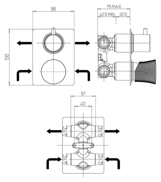 • Встраиваемый монтаж скрывает все соединения и оставляет на виду только рычаги управления, экономя пространство.