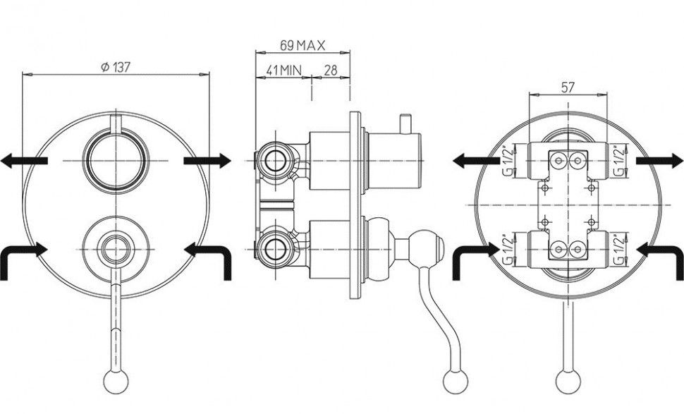 - Встраиваемый монтаж скрывает все соединения и оставляет на виду только рычаг управления, экономя пространство.