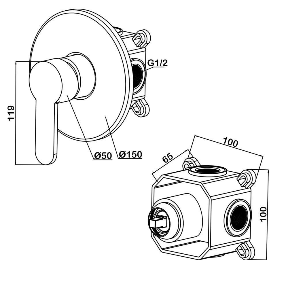 Встраиваемый смеситель Swedbe Platta 5523 подключение на один выхода хром купить
