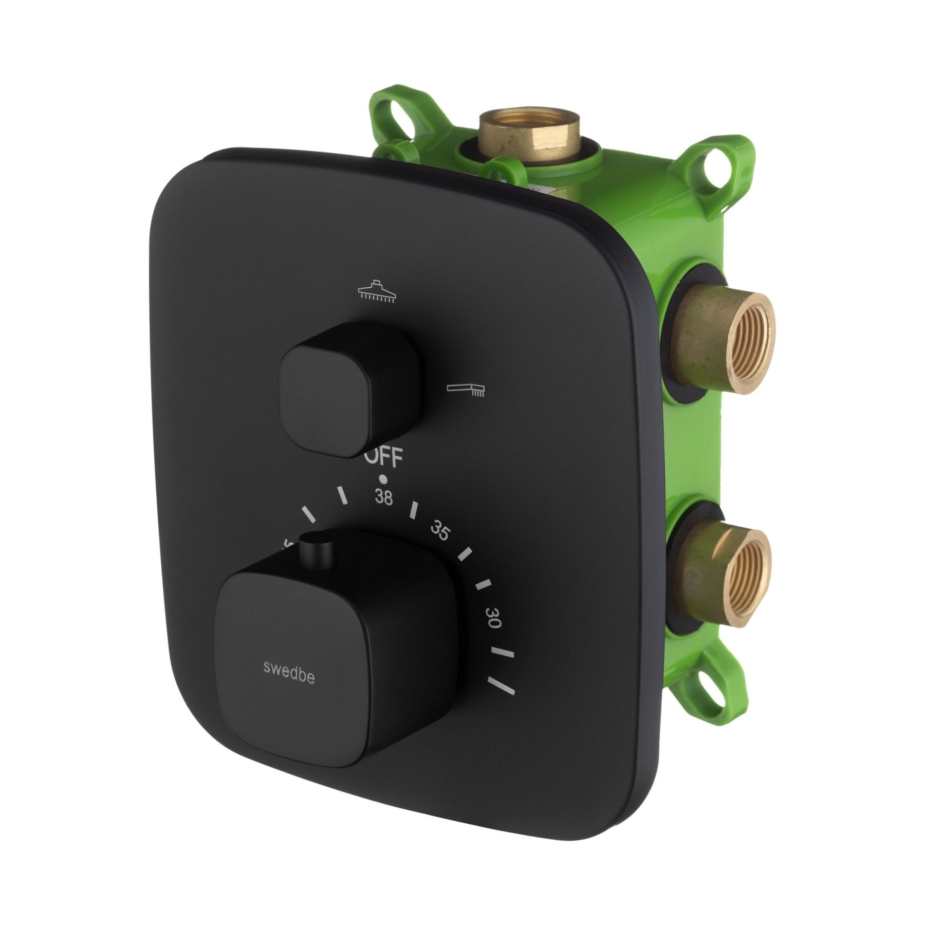 Встраиваемый смеситель Swedbe Platta 9032B термостатический подключение на три выхода чёрный