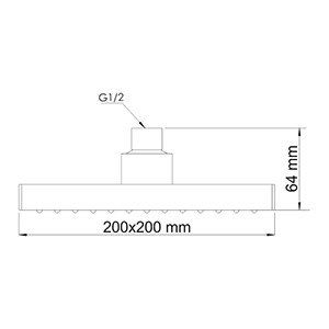 - Душевая насадка черная 200х200 мм, 144 форсунки, ABS-пластик