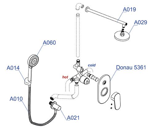 Wasserkraft А14029 Встраиваемый комплект для душа с верхней душевой насадкой и лейкой