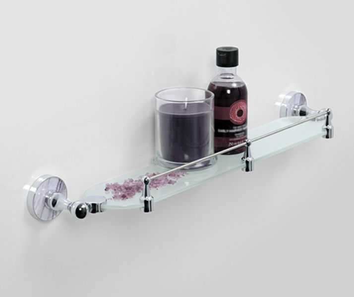 WasserKRAFT Полка стеклянная с бортиком K-8544Размер: Ш610 х Г117 х В60 ммМонтаж: настенныйЦвет держателя: хром, акриловая вставка "горный мрамор"Полка: матовое стеклоТолщина закаленного стекла: 6 ммМатериалы: металл, акрил, хромоникелевое покрытие, уплотнительные пластиковые кольца, закаленное матовое стекло