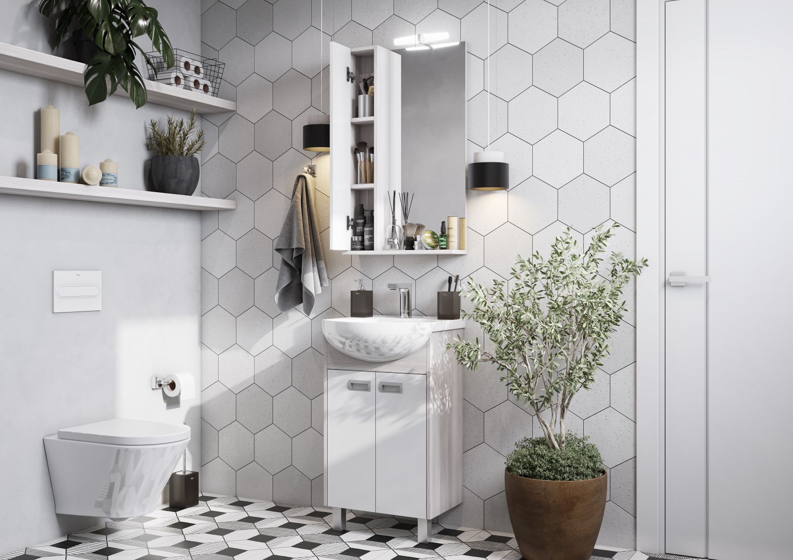 Зеркальный шкаф Акватон Бекка 50см белый/дуб сомерсет 1A214502BAC20