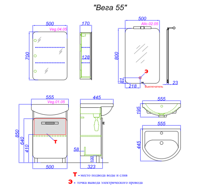 Зеркальный шкаф Aqwella Вега Veg.04.05