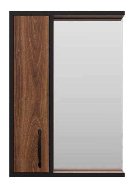 Зеркальный шкаф Misty Кедр 50см левый чёрный/орех