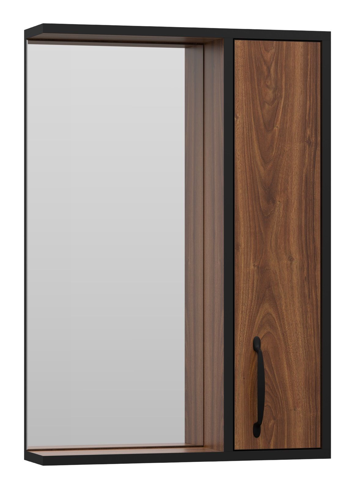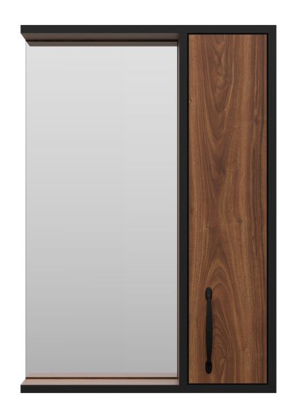 Зеркальный шкаф Misty Кедр 50см правый чёрный/орех