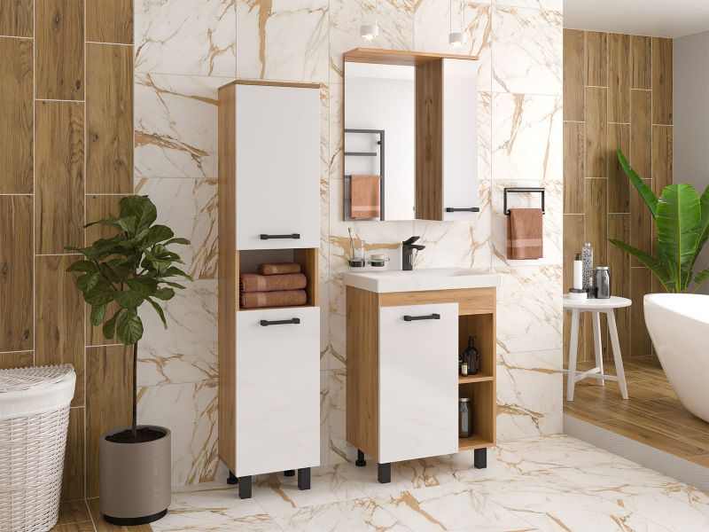 Зеркальный шкаф Misty Крафт 60см правый белый/дуб крафт золотой