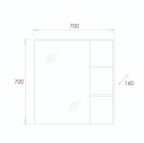 Зеркальный шкаф выполнен из ЛДСП, устойчивой к механическим воздействиям, перепадам температур и высокой влажности.