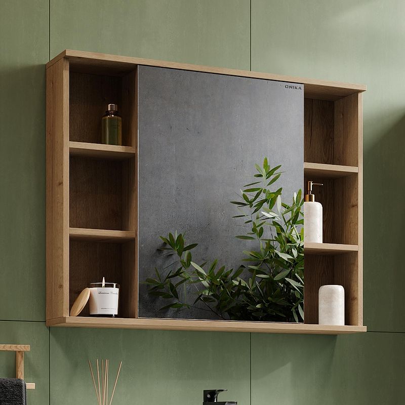 Зеркальный шкаф Onika ЛЕГРАН 90 - это безупречное сочетание красоты и функциональности. Роскошная текстура и натуральный цвет дуба подарят помещению дыхание природы и привнесет в ванную комнату ощущение гармонии. Открытые полки по бокам обеспечивают быстрый доступ к часто используемым аксессуарам, а пространство за распашной зеркальной дверцей с доводчиком, разделенное полочкой, станет удобным местом для хранения различных бытовых принадлежностей. Зеркальное полотно создано на основе серебряной амальгамы, которая обеспечивает качественное изображение, влагостойкость и долгий срок эксплуатации. Шкаф имеет универсальную ориентацию: верх и низ шкафа можно менять местами, а дверца может открываться как влево, так и вправо. Шкаф-зеркало выполнен из ЛДСП, устойчивой к механическим воздействиям, перепадам температур и высокой влажности. Подвесы для крепления шкафа - в комплекте. Габариты изделия 90х16х73 см. Гарантия 2 года.