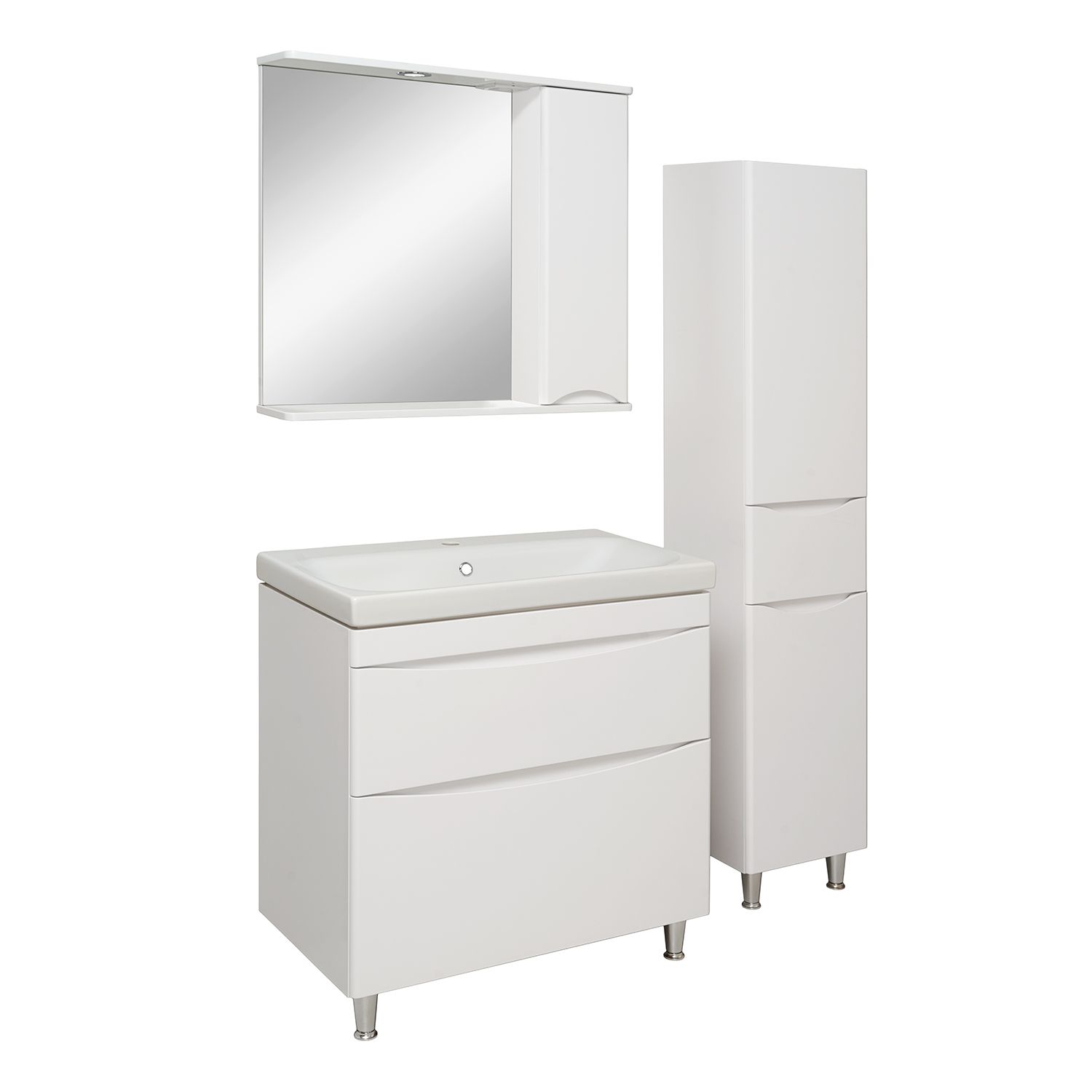 Зеркало настенное со шкафчиком и полкой RUNO АФИНА - безупречное сочетание модных тенденций с классическим оформлением ванной комнаты. Зеркало для ванной со шкафчиком АФИНА представляет собой зеркало настенное (слева) и шкаф в ванную с одной дверцей (справа). В шкафу имеются две внутренние полки. Шкаф для ванной оборудован одним врезным светодиодным светильником 220В и розеткой с выключателем. Шкафчик в ванную комплектуется петлями со встроенным доводчиком и ручкой. Мебель для ванной RUNO - красота и практичность в мелочах! Зеркало с подсветкой , полка для ванной , зеркало с подсветкой в ванную , полка в ванную , полки для ванной , зеркало в ванную с подсветкой , мебель для ванной комнаты