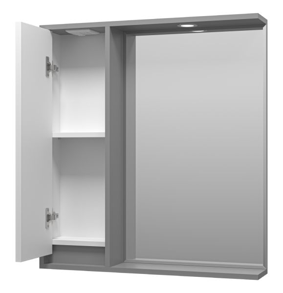 Зеркальный шкаф с подсветкой Brevita Balaton BAL-04075-01-01Л левый 75см белый/серый