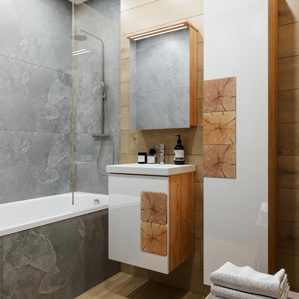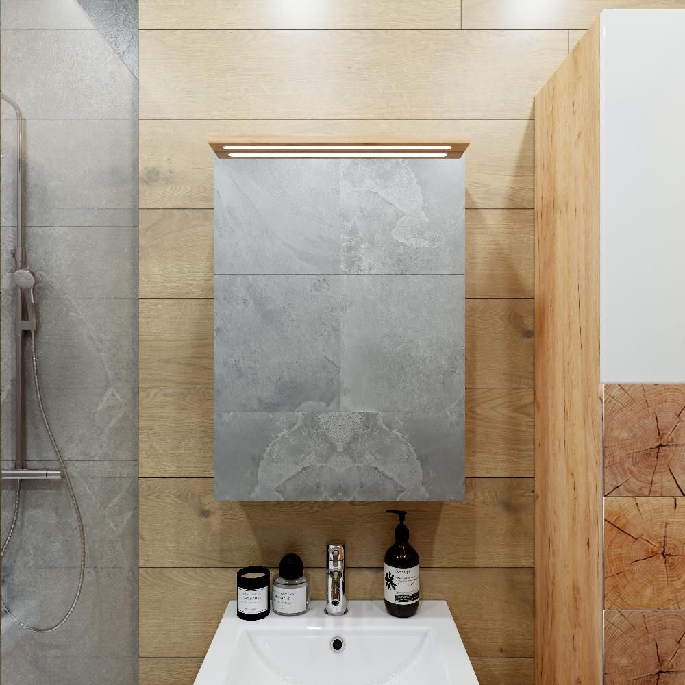 Зеркальный шкаф с подсветкой Бриклаер Форест 4627125414701 50 см дуб золотой/антрацит купить