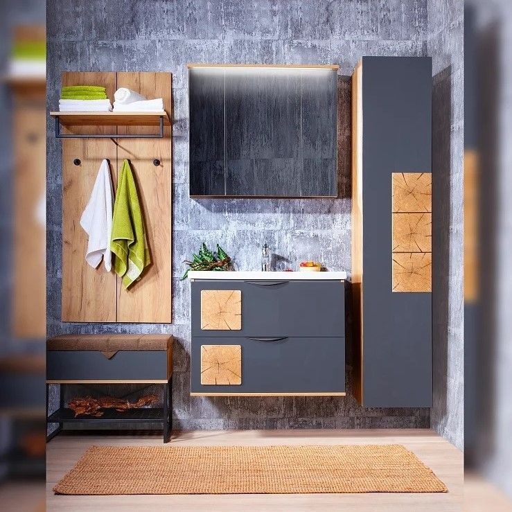 Зеркальный шкаф с подсветкой Бриклаер Форест 4627125414718 80 см дуб золотой/антрацит купить