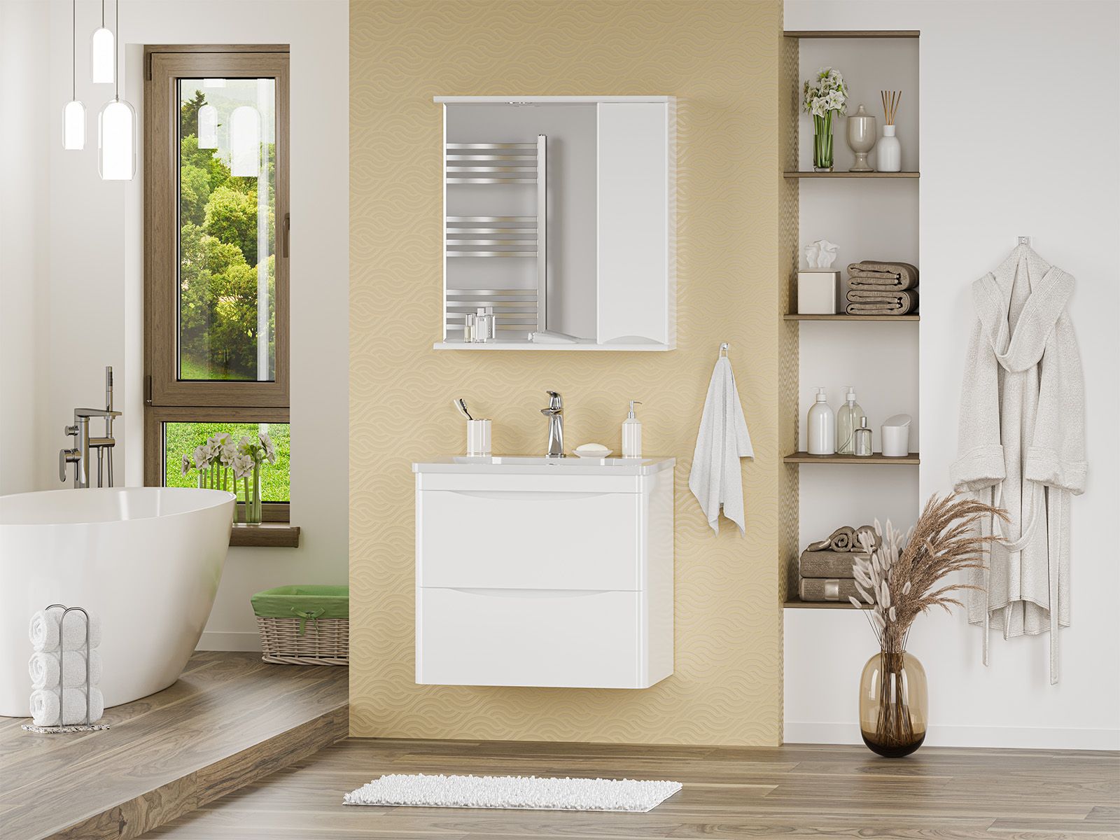 Зеркальный шкаф для ванной комнаты – это стильный акцент, который может преобразить любое пространство. С его элегантными линиями и продуманным дизайном, он идеально вписывается в современный интерьер. Внешняя поверхность шкафа, выполненная из качественных материалов, отражает свет, создавая ощущение простора и уюта.Внутреннее содержание шкафа умело организовано: разнообразные полки и отсеки позволяют удобно разместить все необходимые аксессуары – от косметики до бытовой химии. Зеркало, интегрированное в фасад, визуально расширяет пространство и облегчает утренние рутинные процедуры.Зеркальный шкаф для ванной комнаты – это идеальное сочетание красоты и практичности, которое станет незаменимым помощником в вашем дневном ритме.
