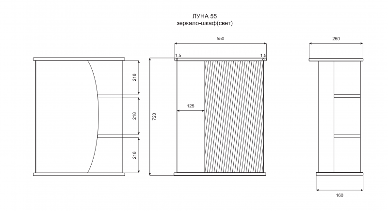 Зеркальный шкаф с подсветкой Misty Луна 55см левый белый