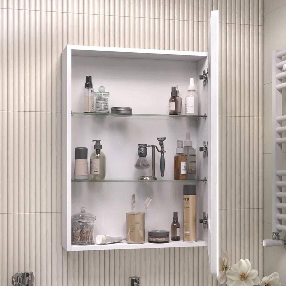 Зеркальный шкаф VIGO Geometry 220, 60 см. 1 дверца, петли с механизмом доводчика, 2 стеклянных п... Подробнее