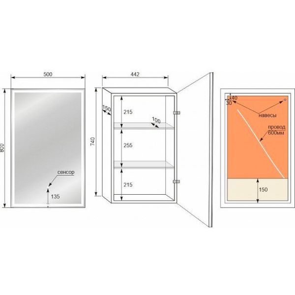 Габариты (ШxВхГ): 500х800х150 мм.