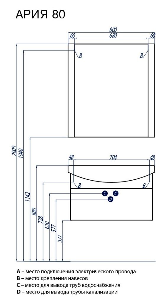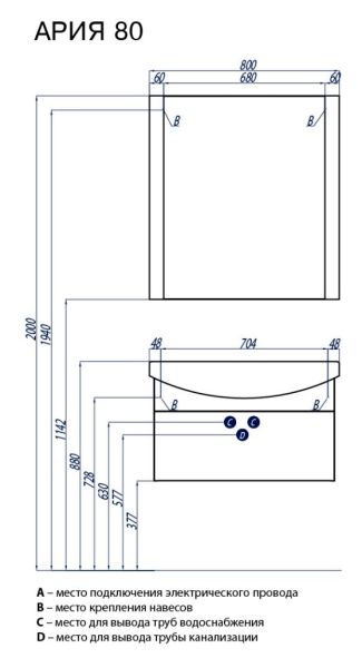 Зеркало Акватон Ария 80см белый 1A141902AA010