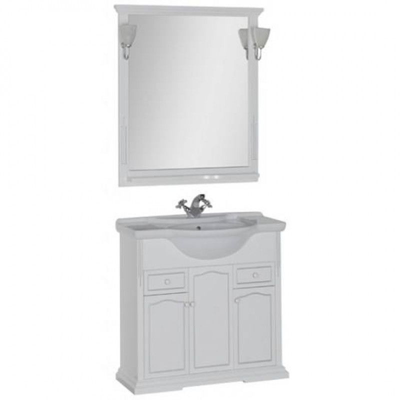Зеркало Aquanet «Тулуза» дополнит интерьер ванной комнаты, став дополнительным штрихом, усиливающим блистательный эффект классического стиля. Простые формы этого аксессуара, оформленные изысканным объемным декором, демонстрируют элегантность и строгость. Зеркало имеет небольшую, но очень нужную полочку, где могут удобно расположиться все самые нужные при умывании средства гигиены и косметика. Освещение комплекта представлено двумя изящными бра в виде цветочных бутонов на металлических ножках, которые являются дополнительной опцией. ВНИМАНИЕ! Светильники в стоимость зеркала не входят.