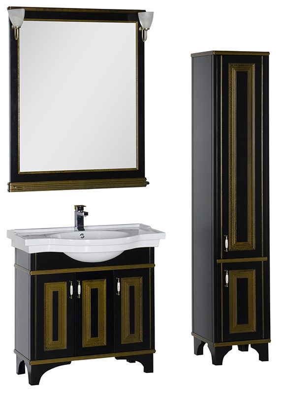 Зеркало Aquanet Валенса 180043 90 см чёрный краколет/золото купить
