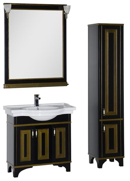 Зеркало Aquanet Валенса 180043 90 см чёрный краколет/золото