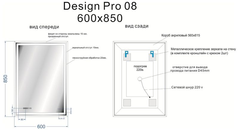Зеркало Cersanit Design KN-LU-LED080*60-p-Os 60x85 см с антизапотеваниемПрямоугольные зеркала DESIGN с полупрозрачными краями усиливают ощущение стиля в помещении. Обрамление из чётких геометричных линий лишь дополняет строгости и лаконичности изделию. В зеркало встроены часы, что позволяет следить за временем тем, кто торопится по утрам на работу. Благодаря спецэлементам стекло не запотевает, кроме того, оно не боится перепадов температуры и влаги.