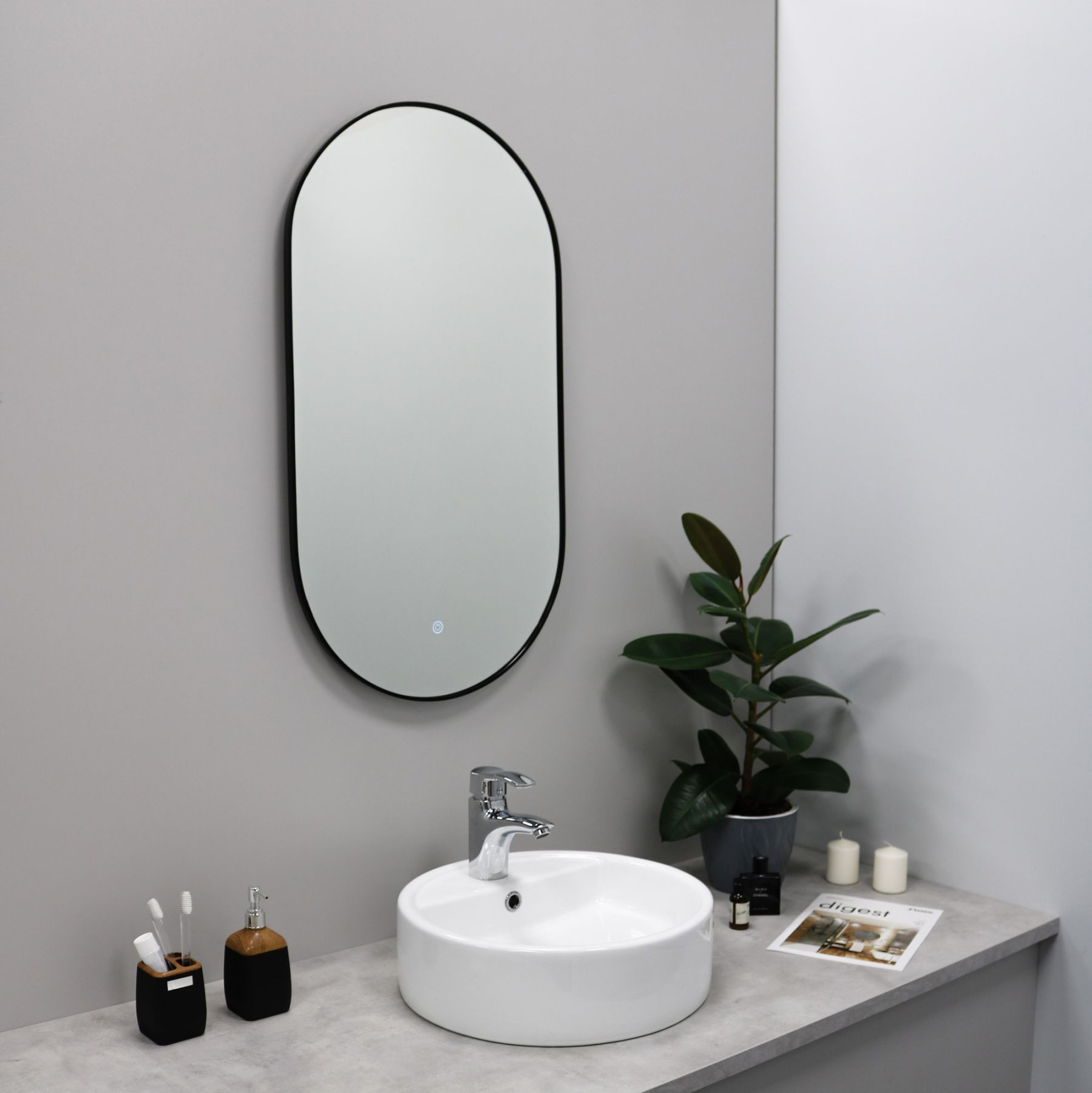 Зеркало FIXSEN с подсветкой LED овальное 50х120 см черное (FX-3120B)