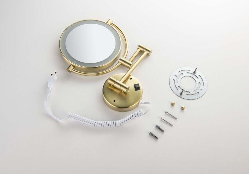 Зеркало косметическое настенное Aquatek AQ4915BG с подсветкой 5х шлифованное золото