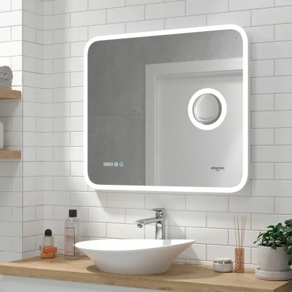 Предлагаем вашему вниманию зеркало с LED подсветкой, встроенным макияжным зеркалом и часами Reflexion Point 800х700